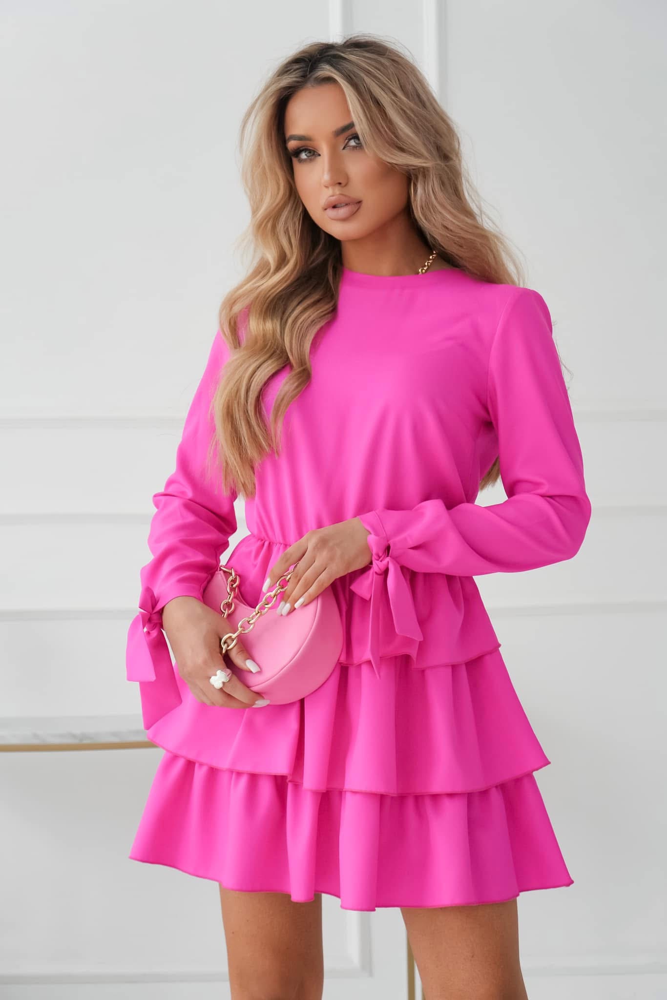 Step into style with our Chic Ruffle Tiered Mini Dress in vibrant bright pink. This eye-catching dress features a playful tiered design, long sleeves, and charming ruffle details that add a touch of femininity. Crafted from soft, breathable fabric, it’s perfect for both casual outings and special occasions. Pair it with your favorite heels or sandals for a chic look that will turn heads.