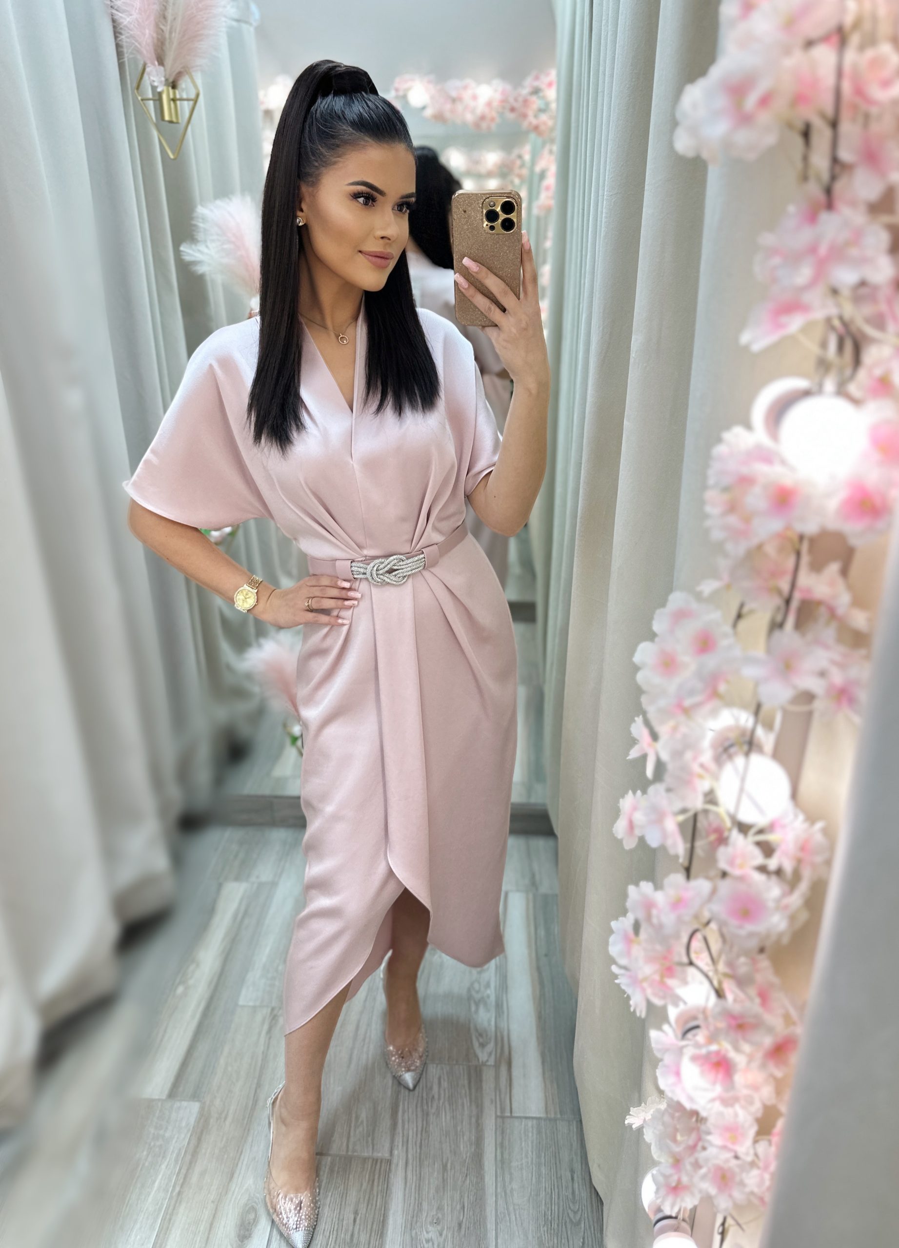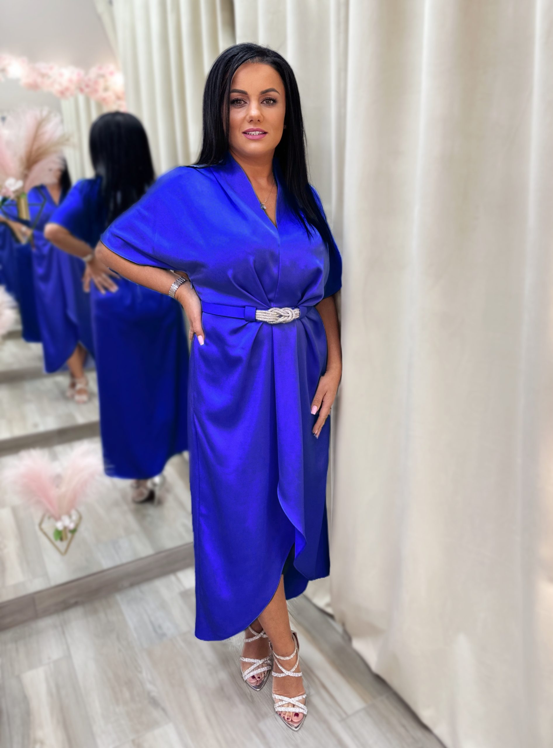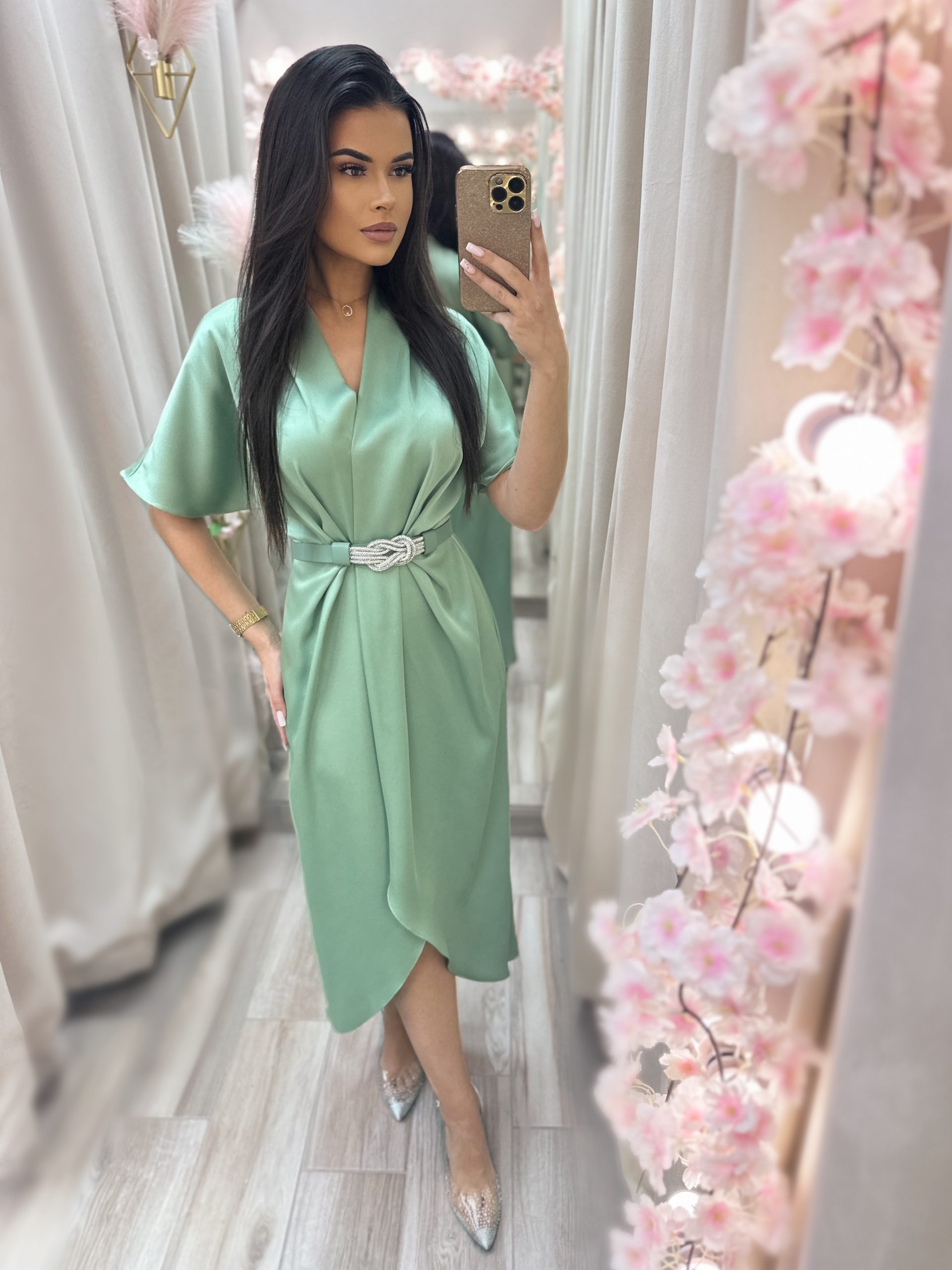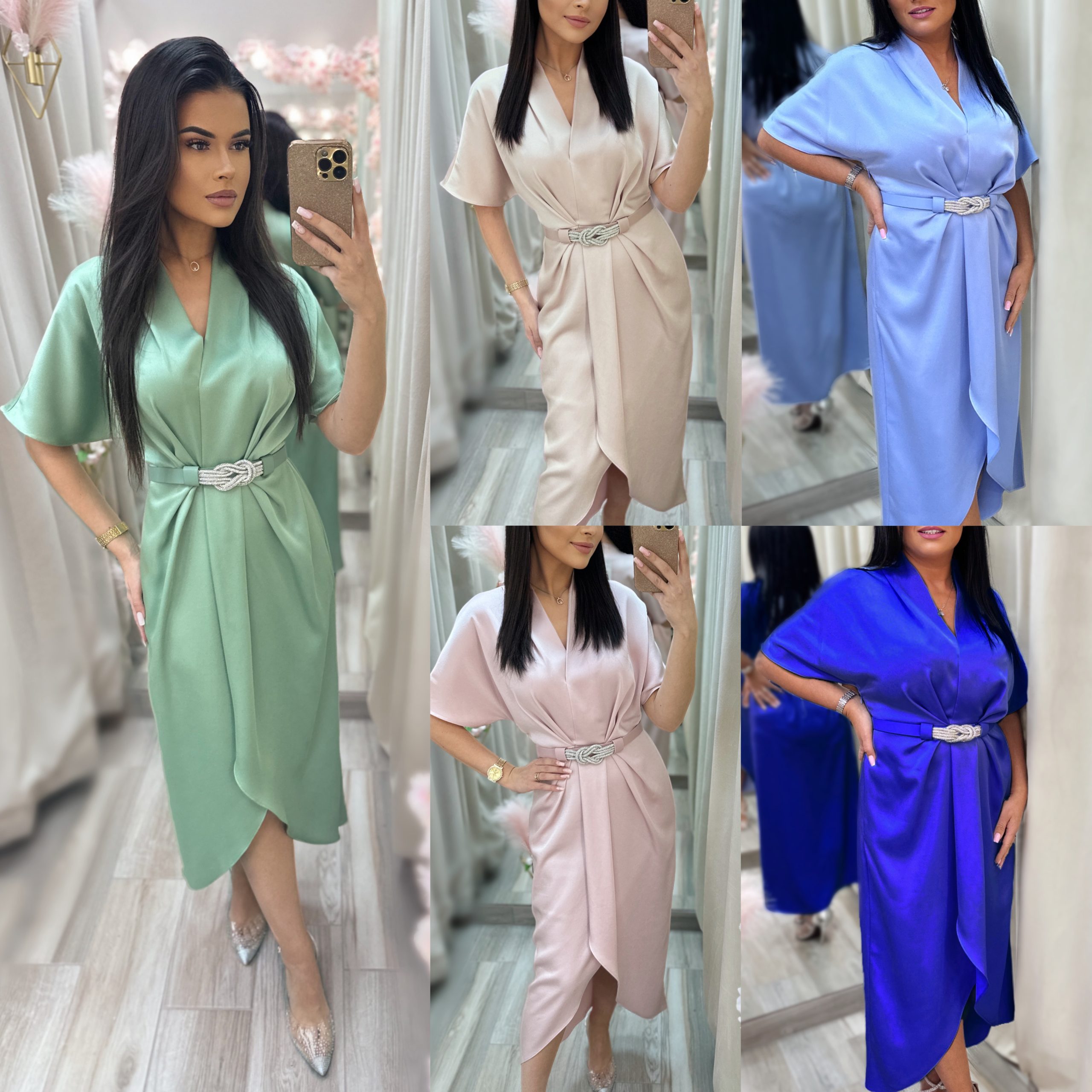 Step into elegance with our stunning Satin Wrap Dress, available in vibrant royal blue, soft pastel blue, and delicate blush pink,beige and green. This dress features a flattering wrap design, short sleeves, and a chic belted waist to enhance your silhouette. Perfect for any occasion, from parties to evening events, this versatile piece combines comfort and style effortlessly.