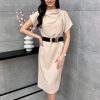 Midi beige dress with belt