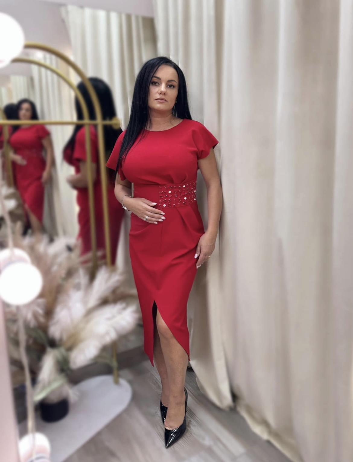 Midi dress with beaded details
