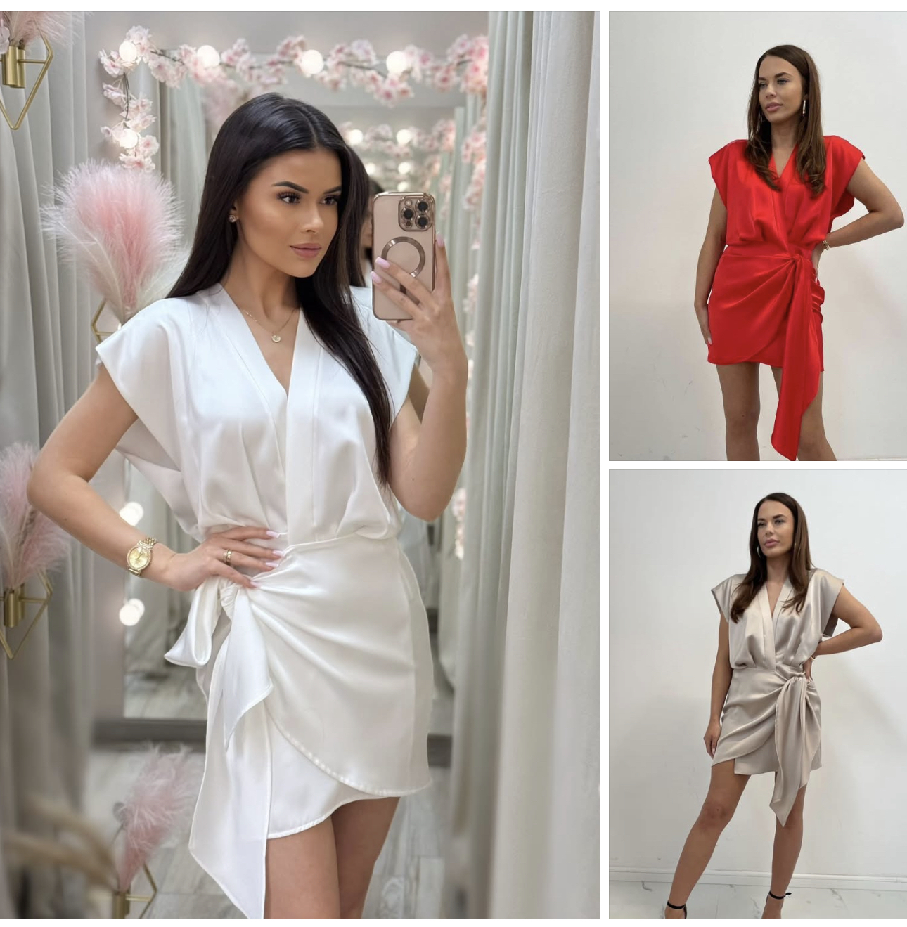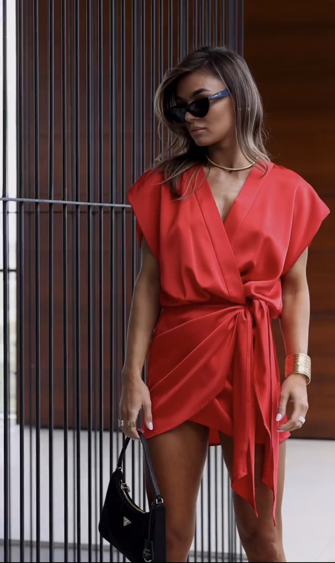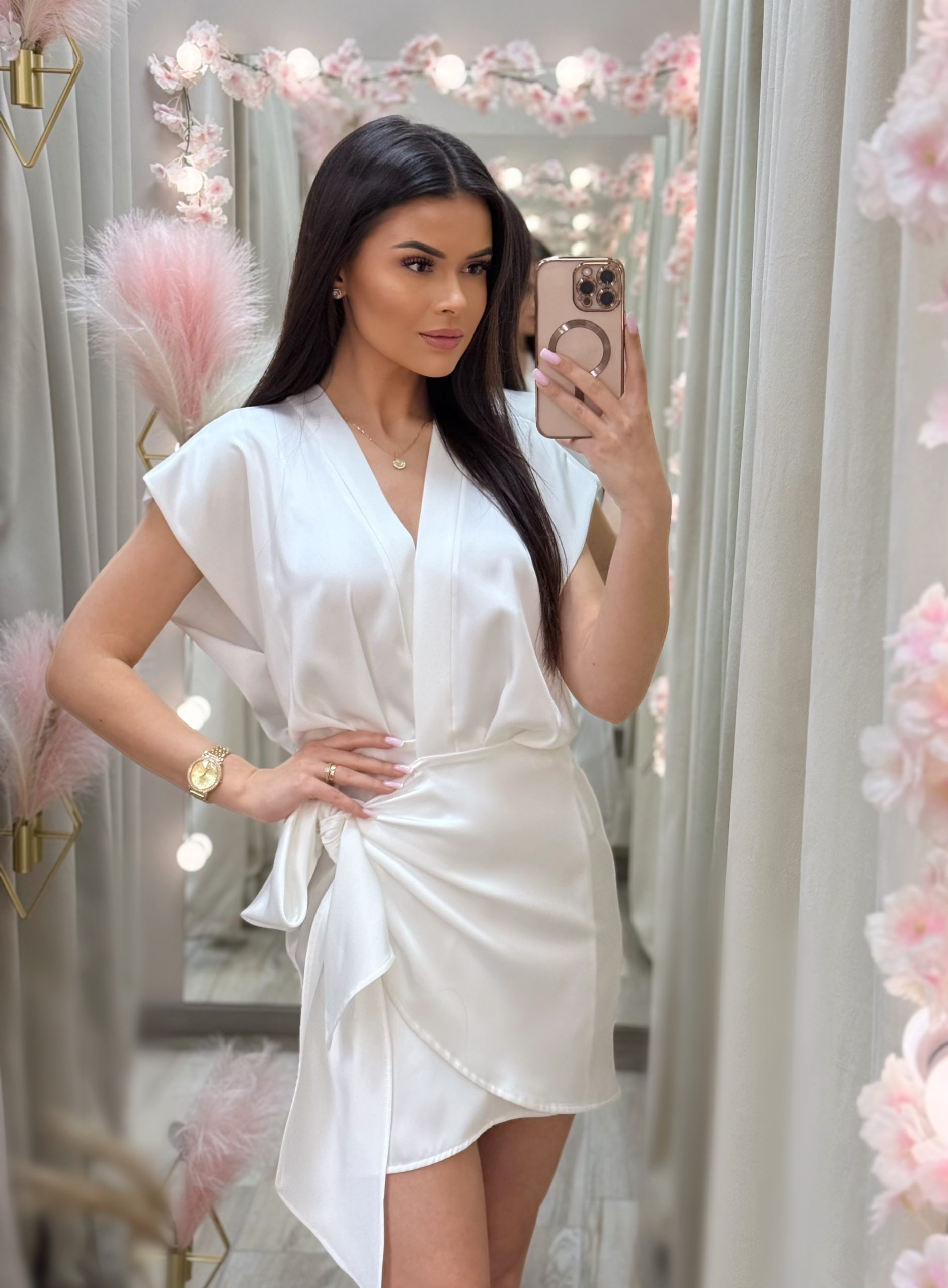 mini satin wrap dress with self-tie beltmini satin wrap dress with self-tie belt