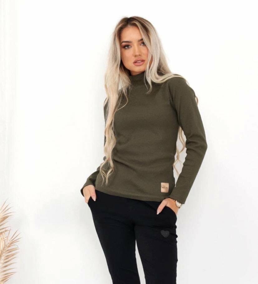 Ribbed turtleneck khaki