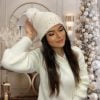 White winter hat with fur pom pom